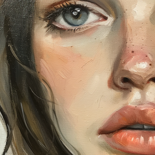 Close-up of beautiful girl's face, showing a calm and determined expression, Georgia O'Keeffe style --v 6.0