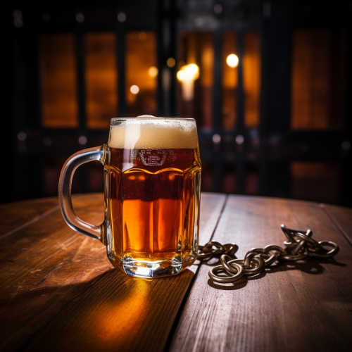 imagen de halloween adentro de un vaso de cerveza, con cerveza, espuma derramandose del vaso por un costado, de fondo de la imagen un bosque de nohe, iluminado por la luz de la luna, tenebroso, cerveza, realista, alta definicion