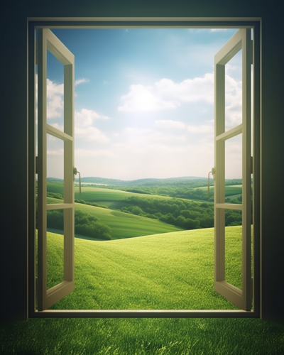 Cloudy Sky Painting with Open Window 4K Image