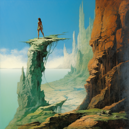 tarot character 'the fool', minimalist with light background and dark clothes, similar to a clown, on a cliff --ar 9:16 --sref 2720573789 --v 6.0 --s 250