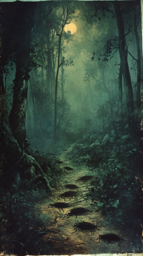 Brom fantasy lithograph, 1950s fantasy comic, Druid knight, gothic fantasy, --ar 9:16 --s 250 --v 6.0