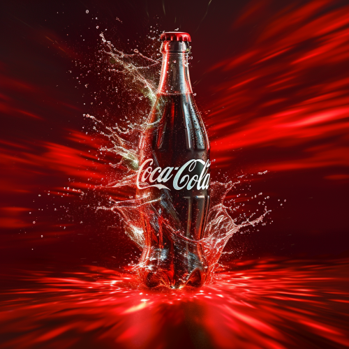 a Coca Cola Bottle in highspeed motion blue, red background, 8k ultimate detailed, --v 6.0