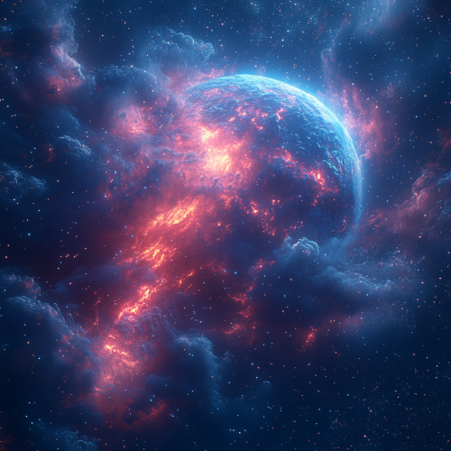 A 3D render of an anime-style illustration of a star with glowing dust. The dust is floating towards Earth. The background is a dark space with twinkling stars. The overall image has a vibrant color palette. --v 6.1 --s 750 --style raw