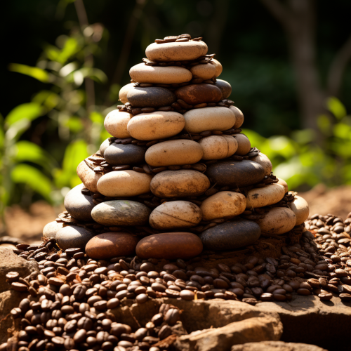 The coffee bean is shot from a diagonal angle, taken at a 45-degree angle, with an off-center focal point, and captured in a food truck with ambient lighting. --ar 4:3 --v 5.0 --s 250
