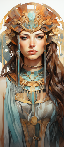 Art Nouveau of an ancient egyptian queen Pharaoh, watercolor, pastel colors, hand draw in Alfons Mucha style, Mucha art, c19th --ar 7:16 --s 750