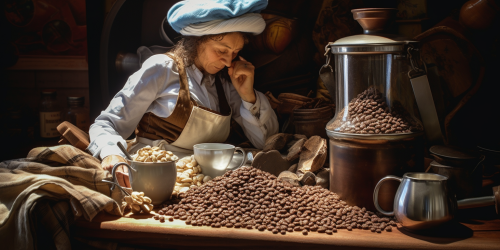 a person pouring coffee into a drip coffee maker, in the style of wavy resin sheets, light brown and dark black, raw authenticity, bold yet graceful, subtle lighting contrasts, sharp focus, open form, A realistic photo with a sensory experience on a black background, shot on an analouge 1970's fujifilm camera on 35mm film --style raw