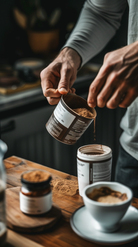 a person pouring coffee into a drip coffee maker, in the style of wavy resin sheets, light brown and dark black, raw authenticity, bold yet graceful, subtle lighting contrasts, sharp focus, open form, A realistic photo with a sensory experience on a black background, shot on an analouge 1970's fujifilm camera on 35mm film --style raw