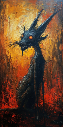 a painting of the chupacabra done in surrealism art style --v 6.0 --ar 2:4