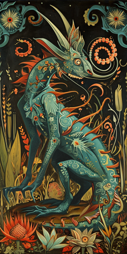 a painting of the chupacabra done in Art Nouveau style --v 6.0 --ar 2:4