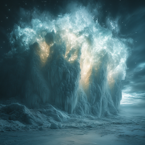 Ice canyon explosion / atmospheric / deep / vast / barren / desolate / eerie / foreboding / frozen wasteland / macabre / menacing / mysterious / ominous / phantasmagorical / strange / uncanny / wondrous --v 6.1 --stylize 250 --chaos 1 --style raw --weird 1 --no people, women, men