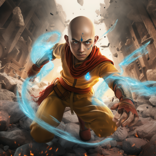 Aang from Avatar the last airbender Challenging spider man, cartoon, anime, hyperrealistic, agression master piece, 8k, epic