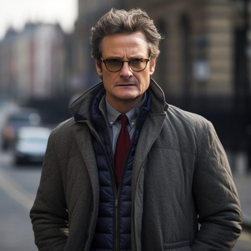 Colin Firth in Spider-Man Costume with Grey Blazer and Wig
