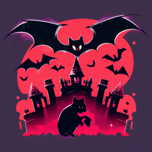 A black cat got bat wings, one eye is green, the other eye is red, back ground is vampire castle, bats around him --niji 4