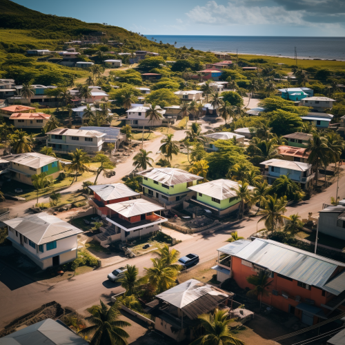 stereotypical neighbourhood in Antigua and Barbuda 8K. RAW image. Captured with a Canon EOS 5D Mark IV. High quality. High resolution image. Fine - art print. Hyper realistic. HQ. Sharp details. Beautiful. Cinematic lighting. Award - winning photography. Clean sharp focus. Significant textures.universe photograph 32k 4k realistic