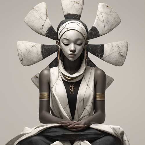 a white and black marble statue of a extremely detailed fractal beautiful girl a black tank top and slim jeans adorned with an Ankh, surrealistic minimalism --niji 6 --p 4odw11f