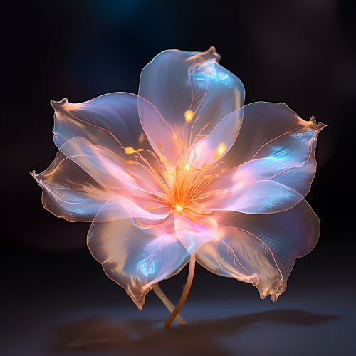 A strange plant named "Dream Flower", its petals are transparent and shining with colorful light, high speed photography, logo, 32K, hyper quality
