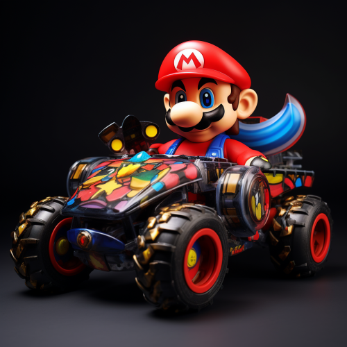 In Mario's world, Batman might wear a colorful, pixelated costume with a cap resembling Mario's iconic hat. Instead of a cape, he could have a dynamic pixelated trail, and his utility belt might store power-ups like mushrooms and fire flowers. The Batmobile could be a stylized kart equipped with various gadgets from the Mushroom Kingdom.