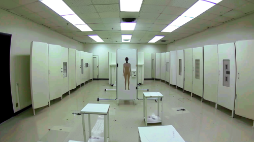 prison guards monitoring the prison cell in a room with holographic dashboards