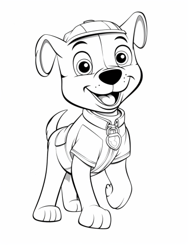 Simple drawing coloring book for children 1 - 4, cute smiling DOG character wearing trousers, black and white, simple outline and shapes, Richard Scarry cartoon style, ultra low detail --ar 17:22 --s 50