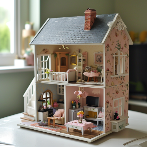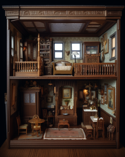 Miniature photography of the inside of a doll house, front view, ultra-realistic, ultra-detailed --ar 8:10 --v 5.0