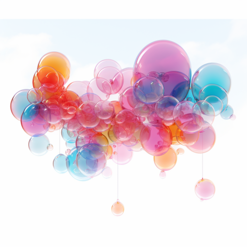 big bubbles chandelier colorful angle shot cloud effect white backgroung to be used as png in photoshop --v 5.2