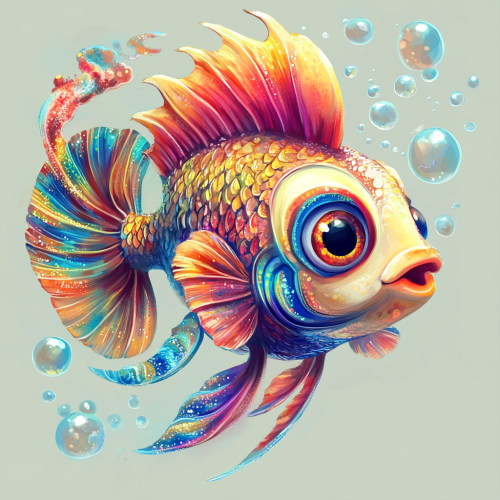 A colorful and confident baby ram cichlid is doing an impressive dance routine, twisting and twirling with a smile, its fins spread wide in a graceful pose. Bubbles and small swirls surround the ram cichlid to show its fluid movements. - Pixar animals style