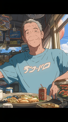A vibrant, anime-inspired mechanic shop transformed into a video production garage. The scene is filled with oversized cinema cameras on car lifts, sleek tripods replacing engine hoists, and shelves lined with lenses, film reels, and coiled cables like high-performance parts. Mechanics in rugged yet stylish workwear make precise adjustments to camera gears, surrounded by detailed, colorful toolkits. Neon accents and warm lighting create a cinematic glow, with sunlight pouring through large, gridded windows. The aesthetic combines the high-energy vibe of a racing garage with intricate anime detailing, blending mechanics and film equipment in a unique, action-packed workspace.