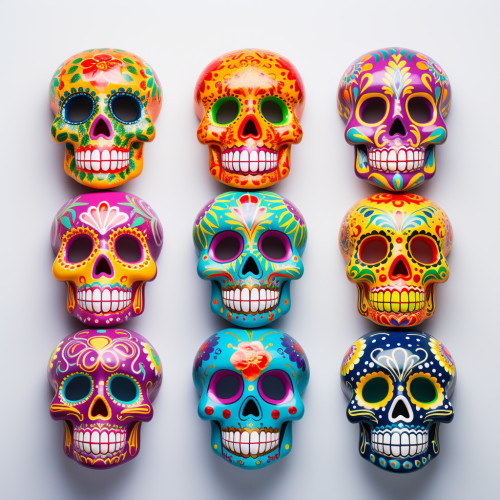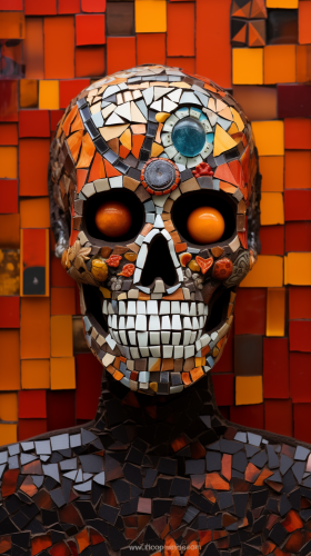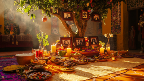 dia de los muertos altar with male a female skulls and dress very mexican --style raw --s 750