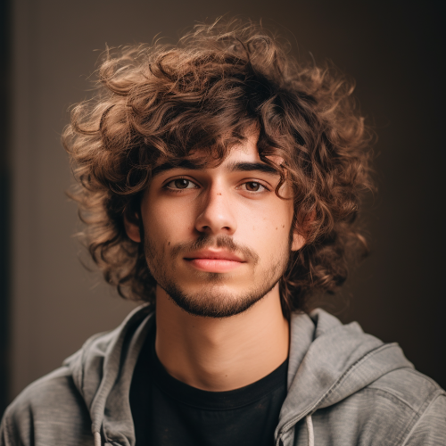man with curly type 4b hair, short sides, mullet, square jaw --v 5.2