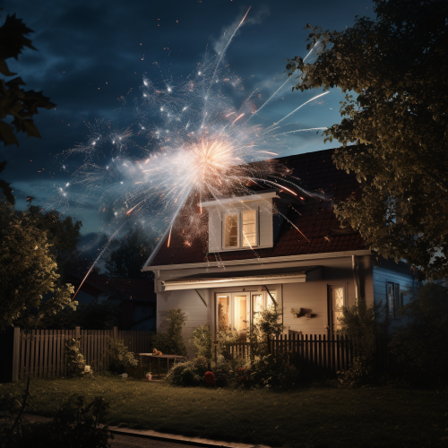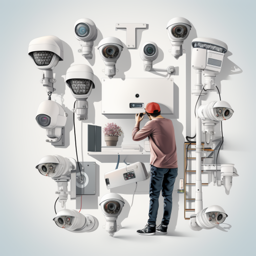 An image with a white background of a man installing security cameras.