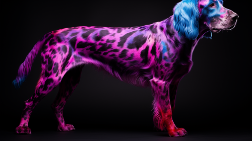 english setter, body made of colored square, colors blue purple pink, full body, background black --ar 16:9