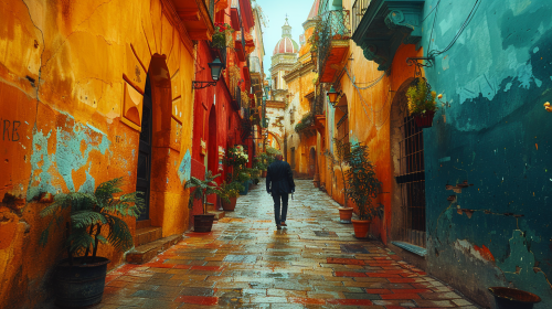 Through alleys and squares, it roamed, A vagabond of colors, never at home. For the world was its canvas, vast and wide, And the wandering brush reveled in its ride --ar 16:9 --v 6.0 --style raw --s 750