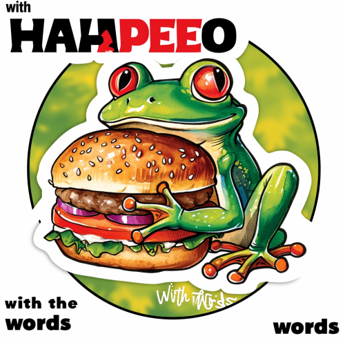sticker-style image featuring a frog eating a hamburger.", with the words "HARAPEKO" included in the design. The frog should be cartoonish and colorful, --v 6.0