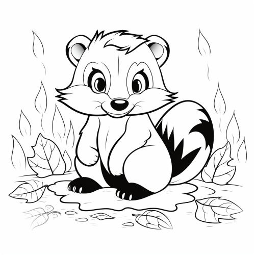 badger in autumn, coloring pages black and white for kids, simple outline and shapes, white background, no shading, cartoon style, character for kids