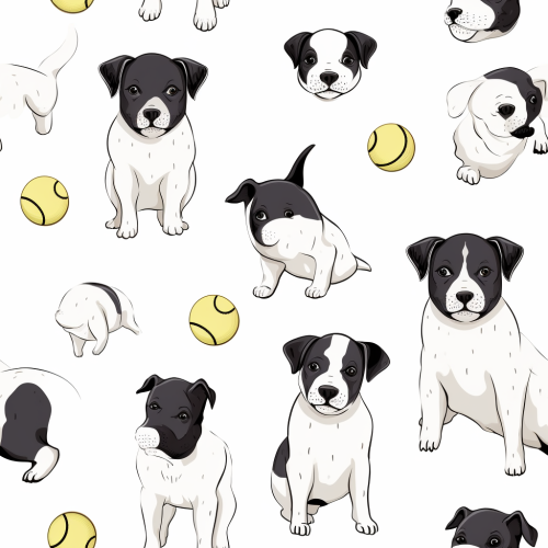 cute scalable pattern. Cute pit bull puppies and tennis balls. Line drawing. Black and white. Minimalist. White background. --tile