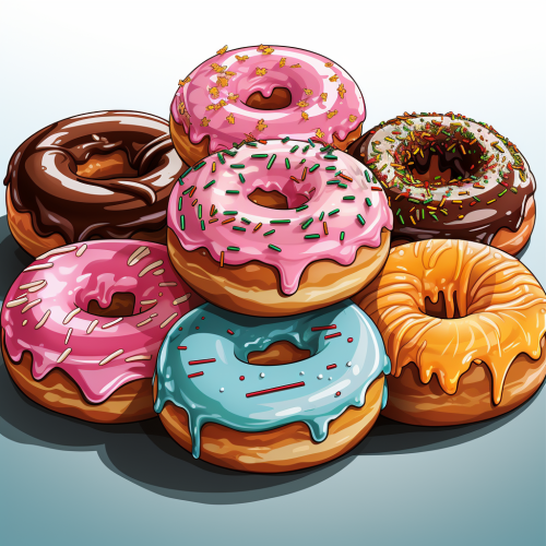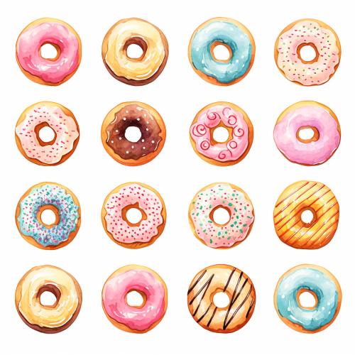 cute watercolor donuts clipart, watercolor effect, clipart, vector, isolated with margins, 4k