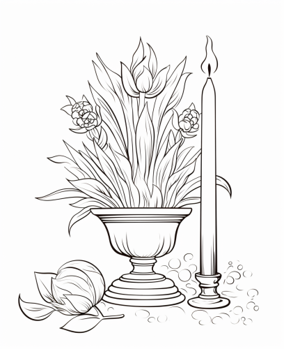 coloring page for kids, Still life with a crown candle in a bronze vase, Van Gogh painting style, cartoon style, thick line, low detailm no shading --ar 9:11