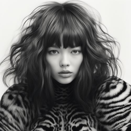 Graphite: Portrait a human tiger using graphite pencils to capture the depth and texture of their fur and skin. Style Yoyoi Kusama