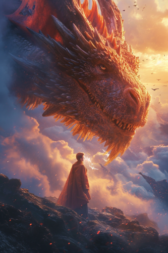 Design a dramatic and powerful comedy movie poster featuring a legendary dragon warrior, inspired by classic mythology. At the center flying the dragon, with an impressive tough yet cute and stupid expression to show the comedy contrast. In his dragon hand, he is holding a transparent shining crystal ball resonates with his own formidable power. His eyes blaze with intelligence and mischief, his stance is bold and defiant, capturing his readiness for any challenge. Behind him, the mystical clouds of his kingdom rise, shrouded in mist, with a dynamic and stylized composition that hints at epic adventures and grand battles. The color palette is rich and intense, evoking the timeless excitement of legendary tales. The overall effect is one of epic grandeur, enticing viewers to step into a world of fantasy, wonderland and heroism. --chaos 20 --ar 2:3 --stylize 600 --v 6.0