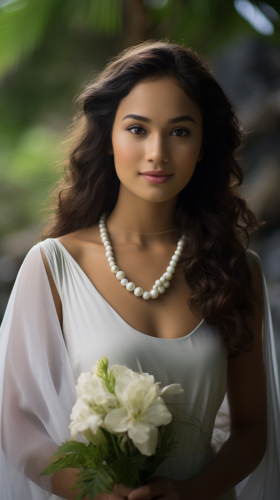 high contrast fashion photography portrait of an androgynous woman wearing minimalist wedding dress, Helmut Newton's style, studio background, dramatic pose --ar 9:16 --niji 6 --s 750 --style raw