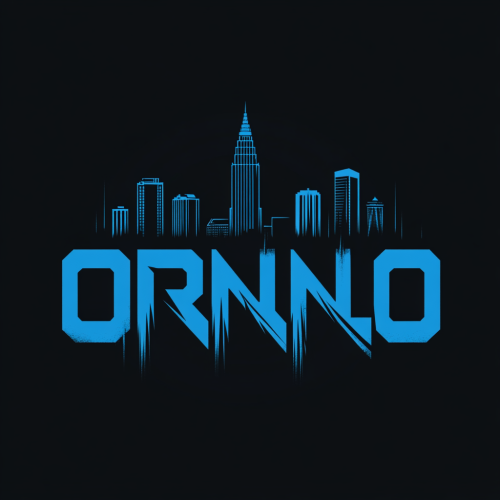 a logo with the word ORLANDO for a card convention show, highlighting trading cards, conversation, and community. Colors should be black, white and blue. vector, minimalist, modern