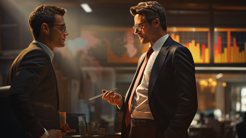 A scene of a human and an ASI avatar engaging in a deep conversation, with holographic data visualizations around them, set in a futuristic, high-tech environment --ar 16:9 --v 6.0