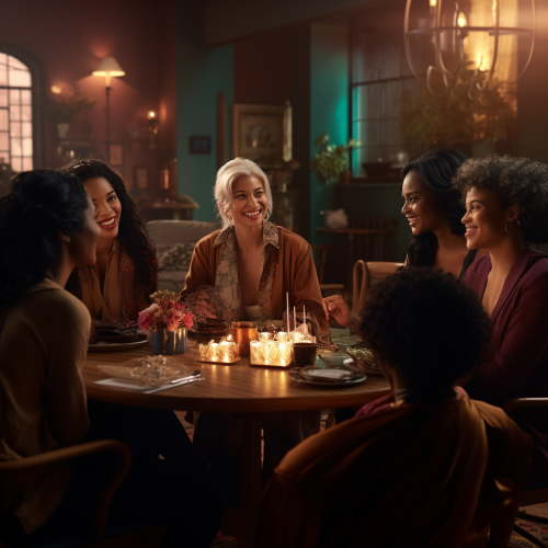 Crew Camaraderie: Members of the crew are depicted in a warm and supportive gathering, representing the strong sense of community within the Lighthouse Crew. They share stories, laughter, and a common purpose beneath the lighthouse's glow.