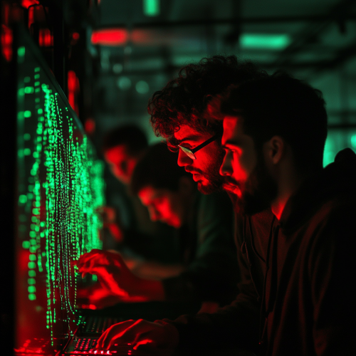 cinematic tech noir male computer hacker in a virtual reality rig, set up inside of an abandoned industrial space packed densely with augmented reality graphics --ar 16:9