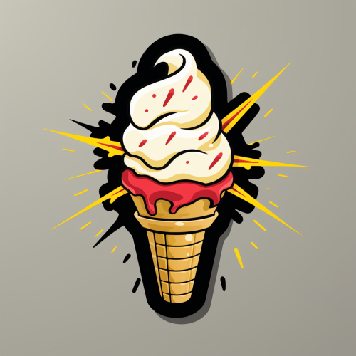 A sticker with a company logo, inspired by cartoon spirit, Cute stick ice cream with a lightning bolt across the back at an angle, simple sketch, minimal, black red and gold colors --v 5.2