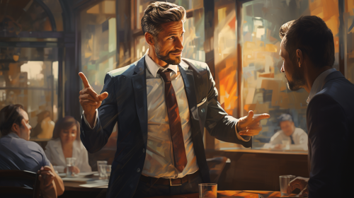 Charistmatic businessman arguer his workmate in office photorealistic --ar 16:9 --s 250