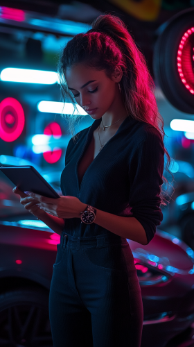 cyberpunk car service, car service, inside the garage, cyberpunk 2d art, flat picture