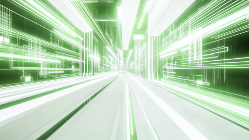 Abstract white and green background with glowing neon lines and futuristic design elements. High-speed digital technology concept. Digital rendering, high resolution, copy space. 8K, real photo, photography. --ar 125:71