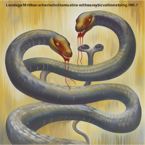 Create an image, with a background, a reflection of the complex emotions of a human, where the main characters will be a snake reflecting the answers, and a human, show all the manifestations of feelings that will be below without text, translate everything into the emotions of this human: Hidden desires of the animal: Pride, stubbornness, mistrust. All loving, romantic., Will learn something new, in a matter in which I have no experience., Evil, darkness, contentment., Greed. Ignorance., Strength of spirit, openness-secrecy in conversations. Arrange goals in order of priority., Destroy the world. Fill in the image with your past experience: Parting with a loved one. Departure of pets., Reflect your fears in an image, creating a multifaceted image: Complete loneliness. Reflect in the picture the character traits of an animal and a human: Strictness, restraint, calmness, serenity., Too strict with oneself. I take myself as an example and try to get people around me to do like me and follow the example. Reflect specific personality traits: Dreams - anger at oneself from powerlessness, Fantasies - everything is strong, everything is powerful, Dreams - to be the first, in demand. Show the wishes of everyone who is present in the image in the background: Another person, different from oneself. Prioritization. I would become more daring, not modest. --no text