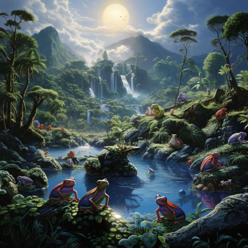 A cozy log cabin nestles in a clearing, surrounded by towering pine trees and a winding stream under a warm, fading colorful evening light,in the style of Studio Ghibli illustrations, with an anime art style, digital painting, oil paint, high resolution, detailed, concept art, digital art, pixel art, wide-angle shot, cinematic, low perspective, side view, fantasy artwork, 2D game graphics, lo-fi aesthetic, pastel colors, hyper-realistic, cinematic, Octane render, Unreal Engine 5. --ar 4:5 --s 500
